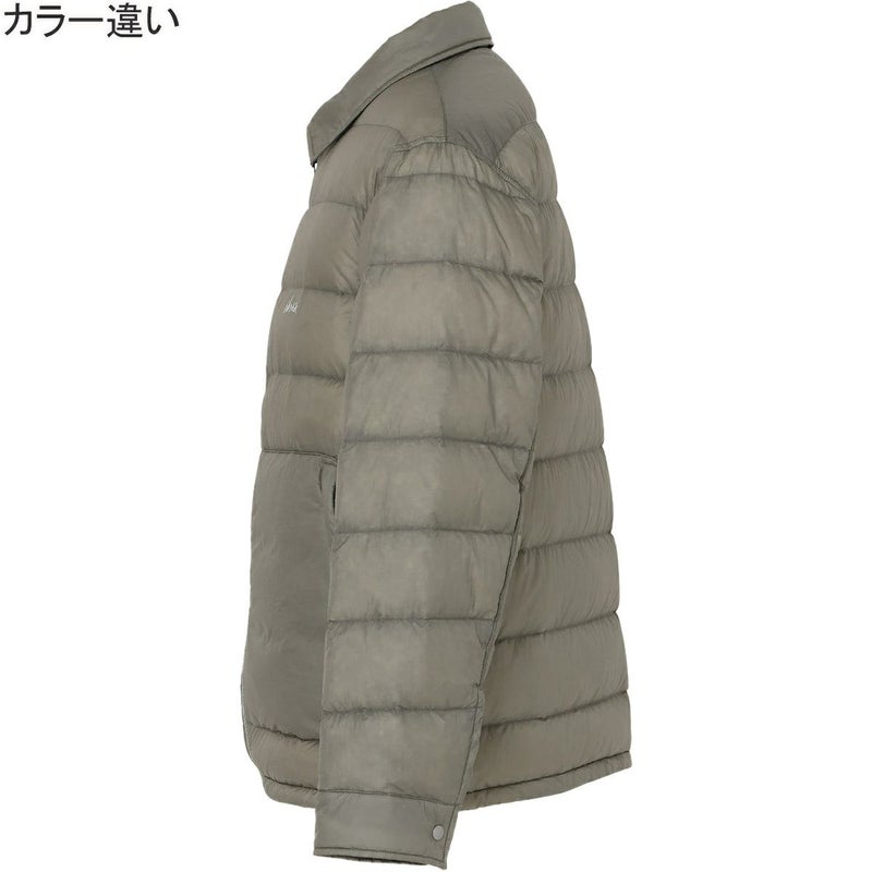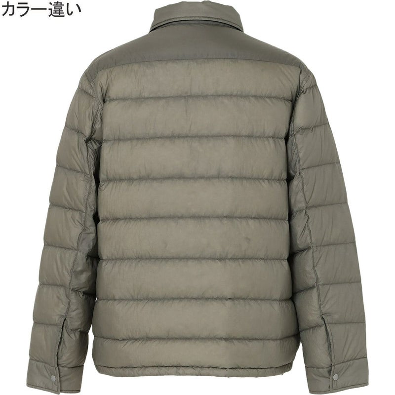 軽量素材の透け感を生かし、羽毛の表情をデザインとして取り込んだシャツ型ダウンブルゾン。