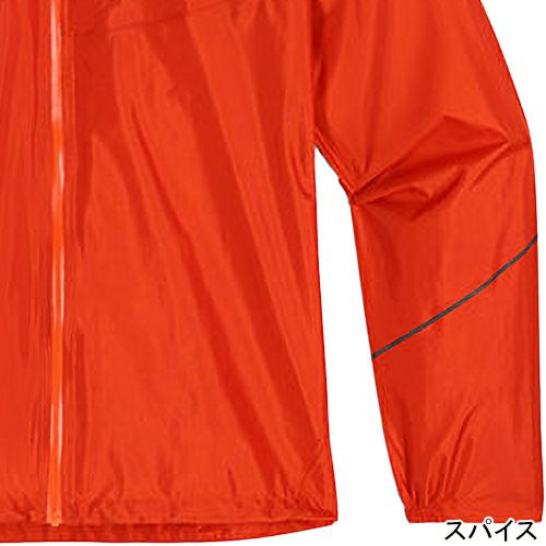 頭周りが調節可能なフード、YKK(R) Aquaguard(R) ジッパー、伸縮性のある袖口が雨水の侵入を抑制します。