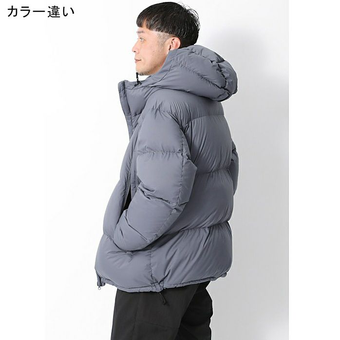 軽さを活かしたフード内への収納機能により、ウィンドブレーカー感覚で手軽に持ち運べるダウンを目指した一着。