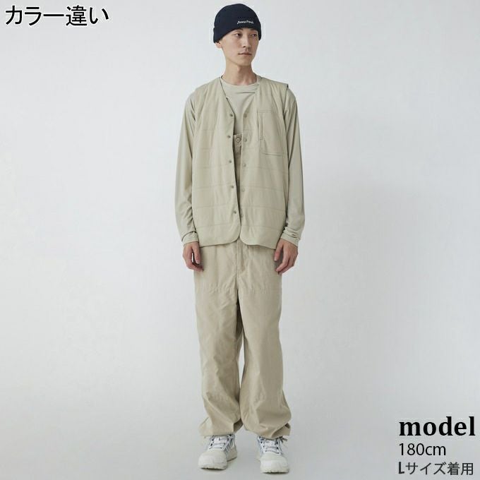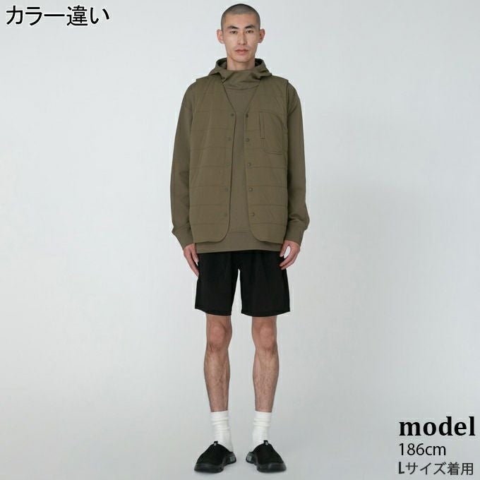 着脱しやすいドットボタン仕様の前開きを採用したベスト。