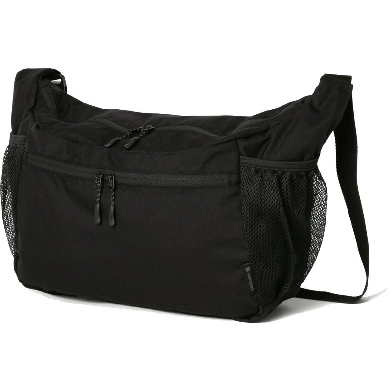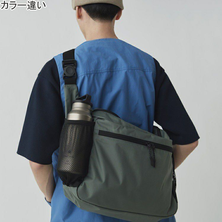 斜め肩掛けにした時に体に沿う形状のミドルサイズのショルダーバッグ。
