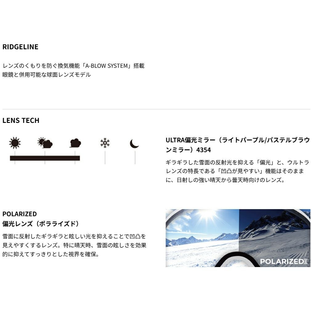 他の画像を見る 即納 スワンズ(SWANS) リッジライン ウルトラ偏光ミラーモデル RIDGELINE-MDH-PU-LP スキー ゴーグル RL-MDH-PU-LP 販売価格 ¥ 24,400 税込 〜 販売価格 ¥ 税込 28%OFF レンズのくもりを防ぐ換気機能「A-BLOW SYSTEM」搭載。眼鏡と併用可能な球面レンズモデル。 詳細を見る お気に入り登録