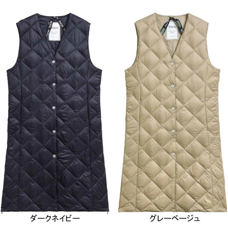 タイオン(TAION) シティ シングル ロングダウンジレ V NECK BUTTON LONG DOWN GILET レディース ベスト TAION-W003CI-LONG