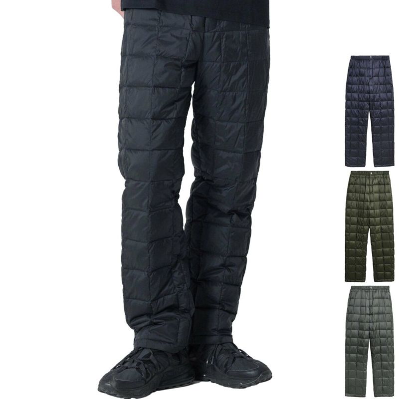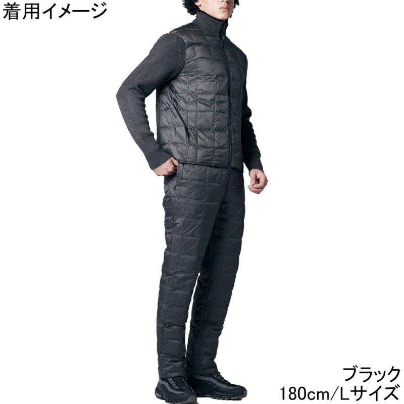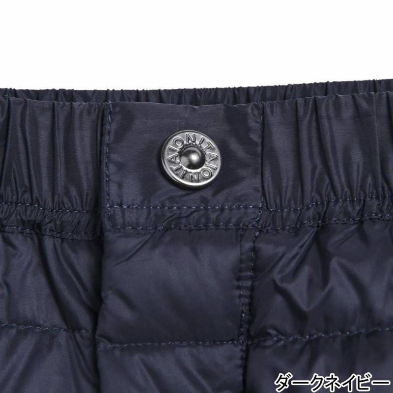 ウエストはゴム+紐で履きやすく、定番で使えるレギュラーシルエット、シーンを問わない万能ダウンパンツです。