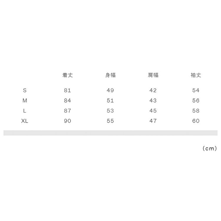 実寸サイズ(cm)S:着丈81、身幅49、肩幅42、袖丈54