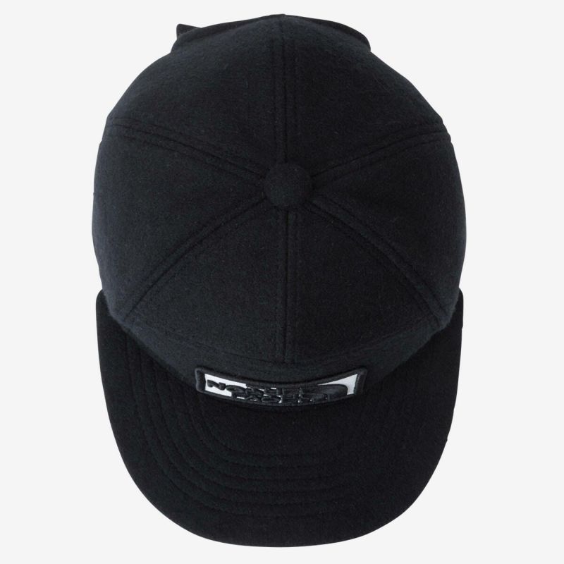 寒い日のアウトドアで重宝する耳当て付きキャップ。