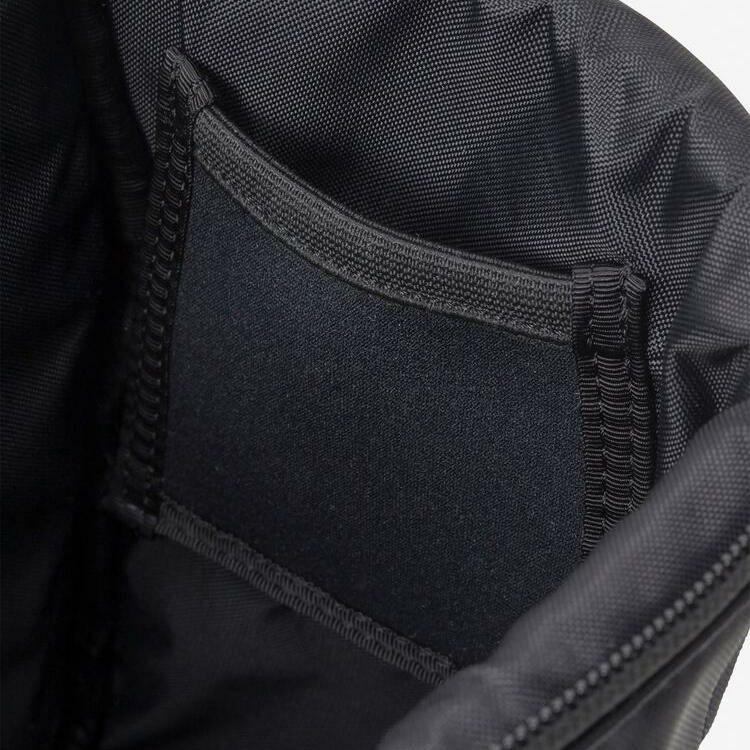 内側に2か所のストレッチメッシュポケットと、フロントに大きなのファスナー付きポケットを設け、メモリーカードや予備バッテリーなども収納可能。