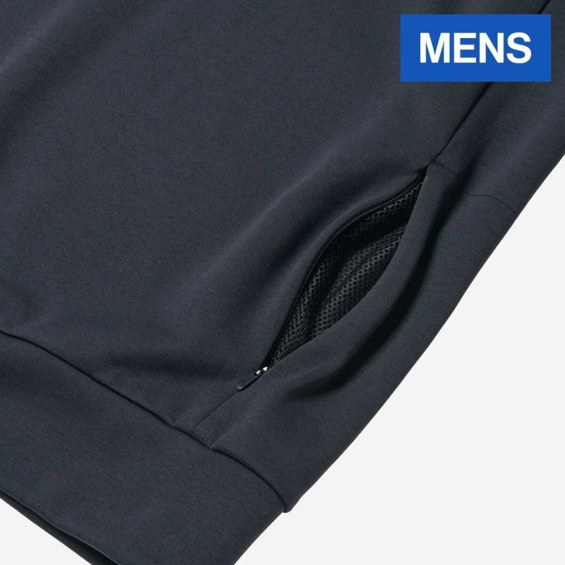 素材に、ポリエステルを使用したスウェット生地を採用し、高い速乾性とストレッチ性を備えています。