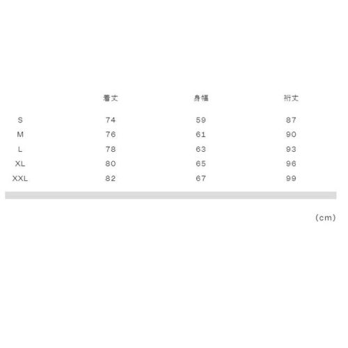実寸サイズ(cm)S:着丈74、身幅59、裄丈87
