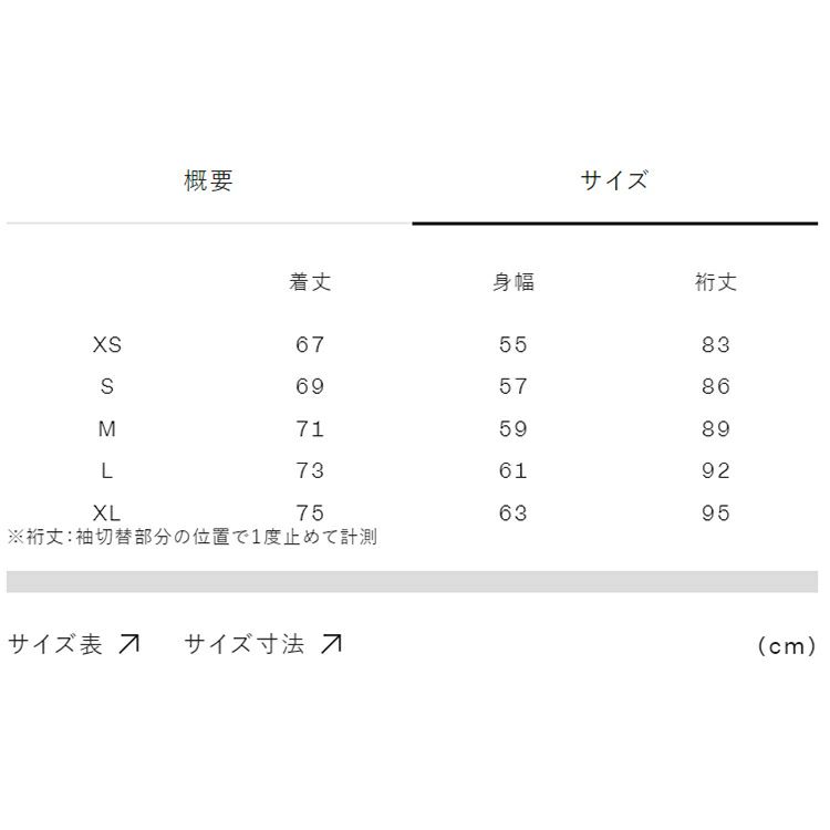 実寸サイズ(cm)XS:着丈67、身幅55、裄丈83