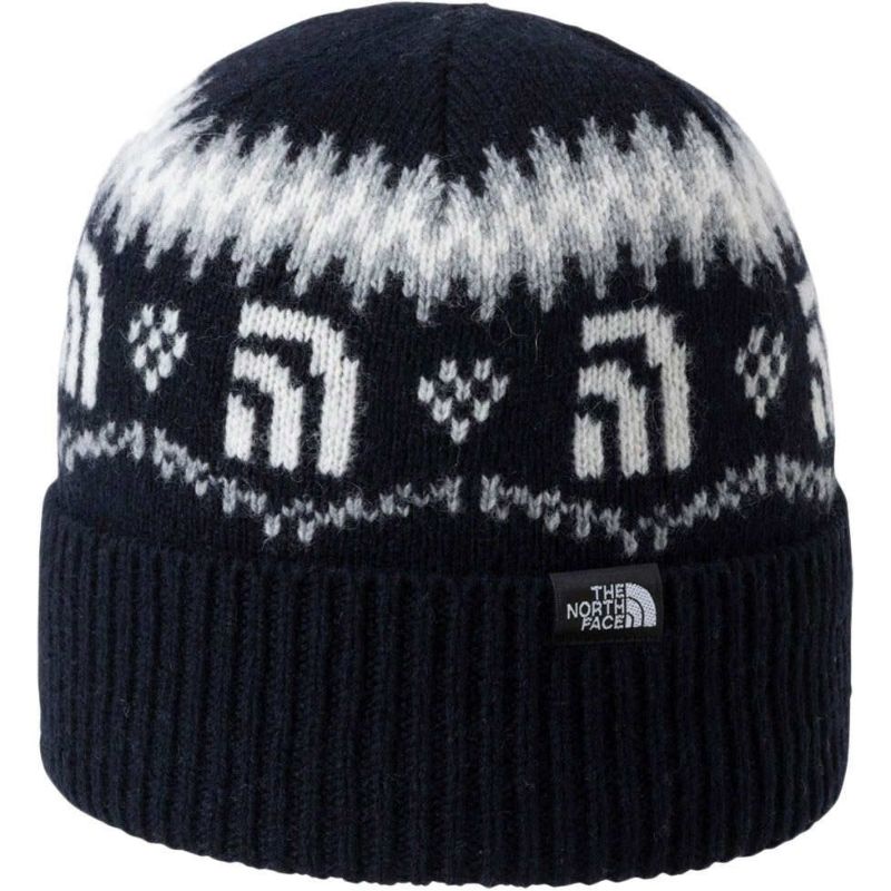 ウールを使用した、ヴィンテージ感のあるデザインのジャカード柄のビーニー。