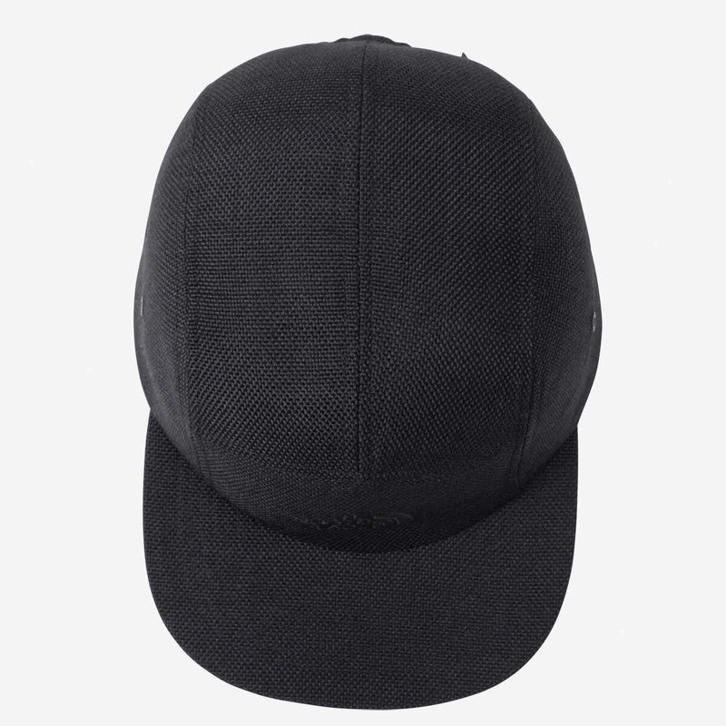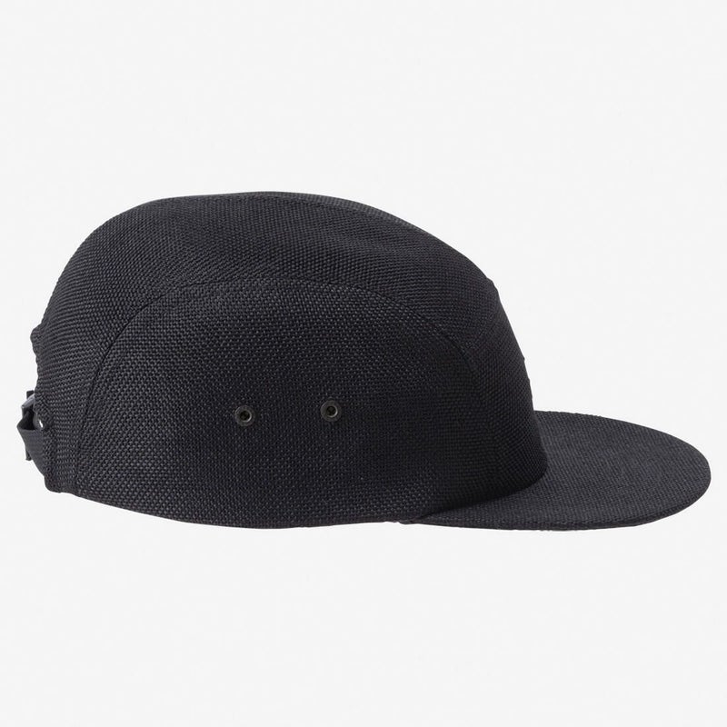 機能的なポリエステル素材を使用しながら、ナチュラルな風合いを引き出した、麦わら調の5パネルキャップ。
