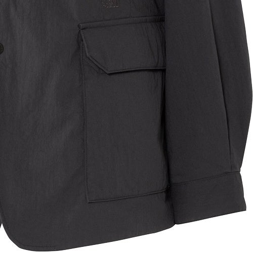 襟はオケージョンに応じて開衿とコーチジャケット仕様の2WAYでの着用が可能です。