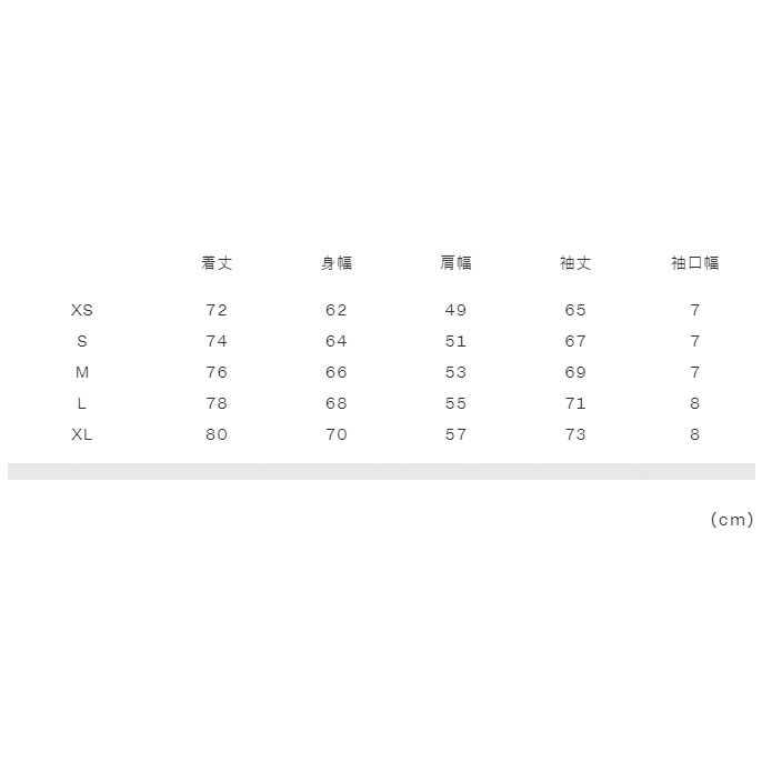 実寸サイズ(cm)XS:着丈72、身幅62、肩幅49、袖丈65、袖口幅7