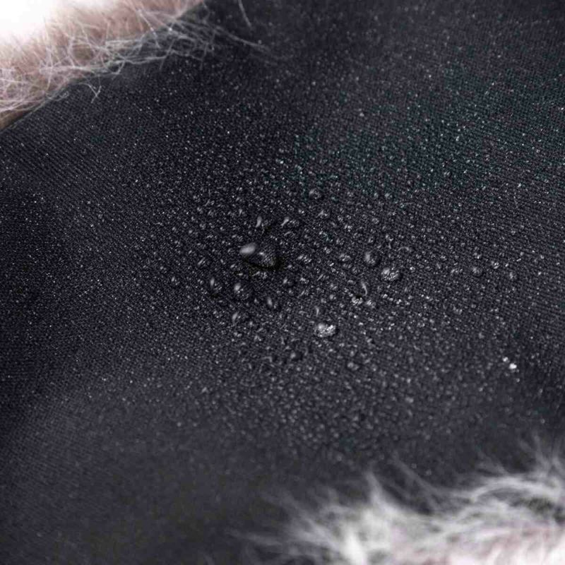 耳当て部分のリサイクルポリエステルのファーは、リアルファーのような色合いと肌触り。