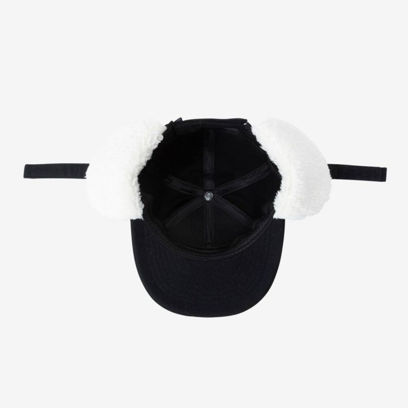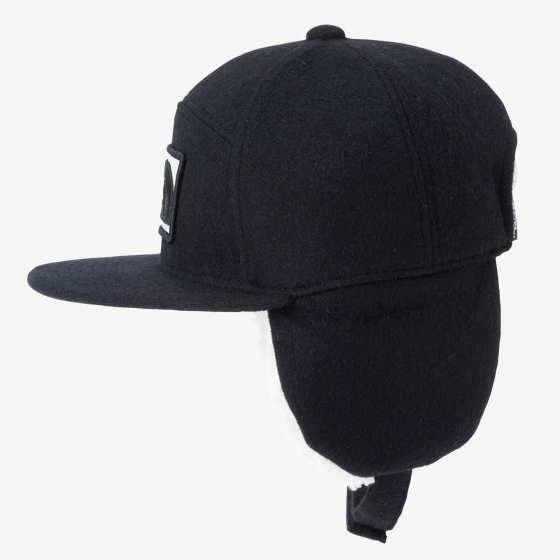 寒い日のアウトドアで重宝する耳当て付きキャップ。
