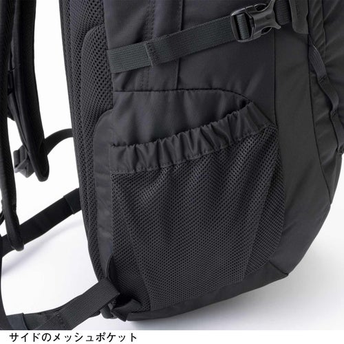 ・サイドにメッシュのボトルポケット 。