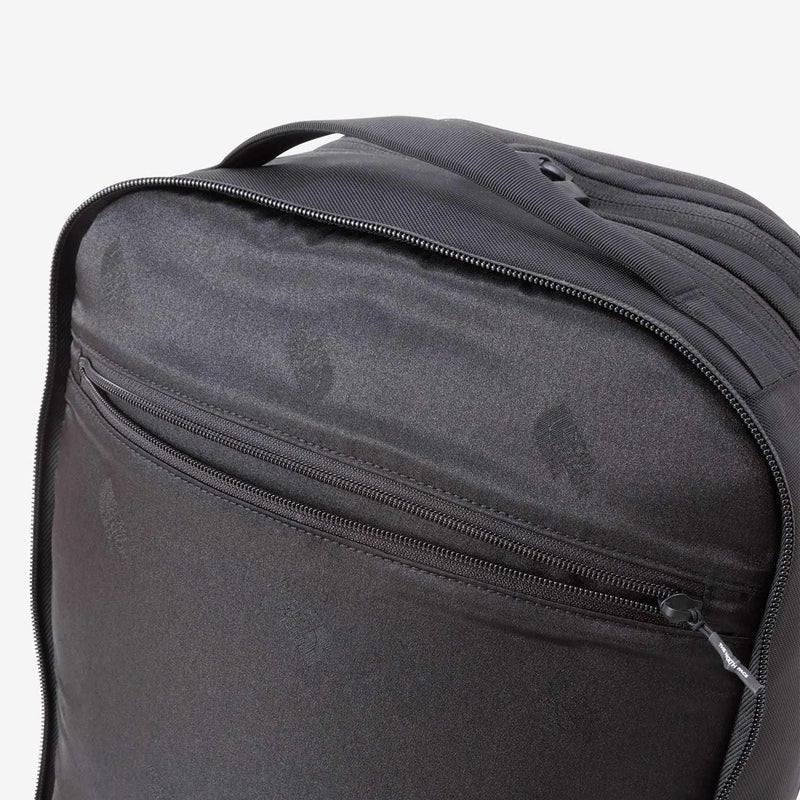 上下に大きく開くメインコンパートメントは、15インチまでのノート型PC収納用のスリーブと書類用のオーガナイザーを設け、衣服の収納も可能。