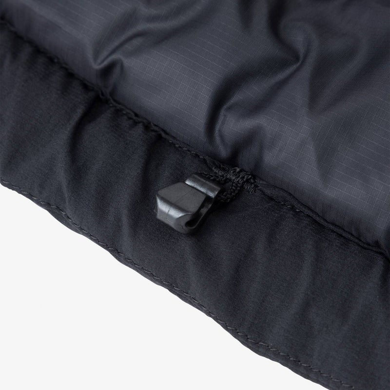 首周りにもわたを厚く封入し、半袖シャツの上から羽織っても身体を温められる保温力を備えています。