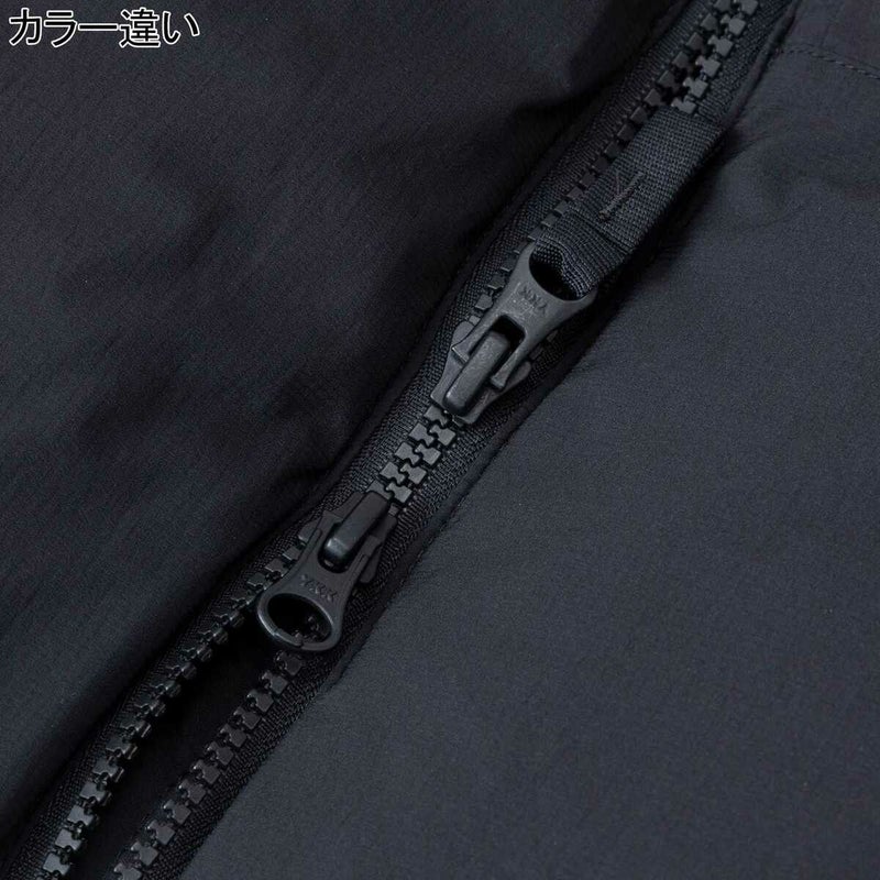 首周りにもわたを厚く封入し、半袖シャツの上から羽織っても身体を温められる保温力を備えています。