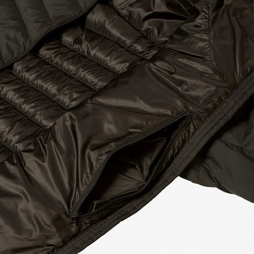 ダウンと化繊わたの軽量ハイブリッドダウンのジャケット。