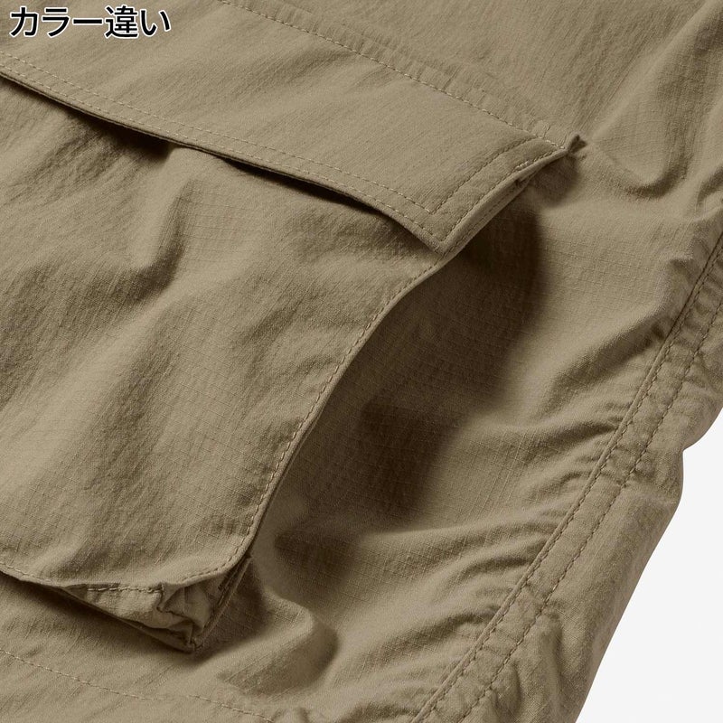 経糸にスパンナイロン糸、緯糸にフィラメントを使用したリップストップ生地は、光沢を抑えたマットな生地感が特徴で、天然素材のようなナチュラルな風合い。