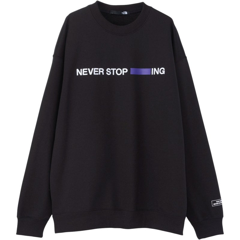 スウェットクルーの左胸に、メッセージ性の高いグラフィックを刺繍で配置しました。