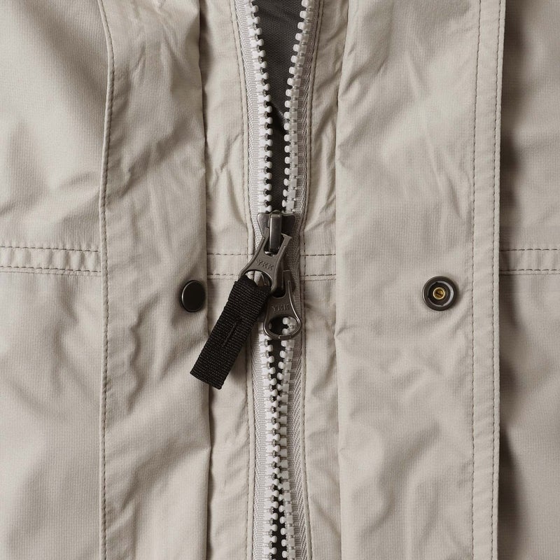 シームテープを張りながらもパッカリングを利かせた縫製を導入し、レインウエアでありながらヴィンテージ風のディテールに仕上げています。