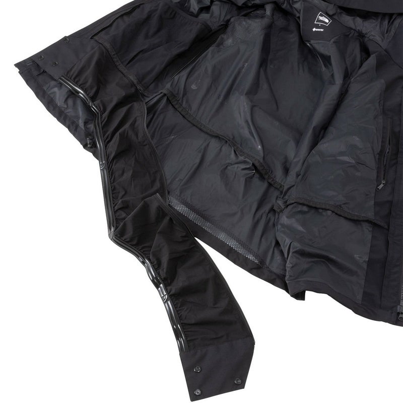 内側の専用ファスナーでインナーを連結できるZIP IN ZIPシステム対応モデルで、フリースなどのミドラーを合わせても動きやすい、ゆとりのあるシルエット。