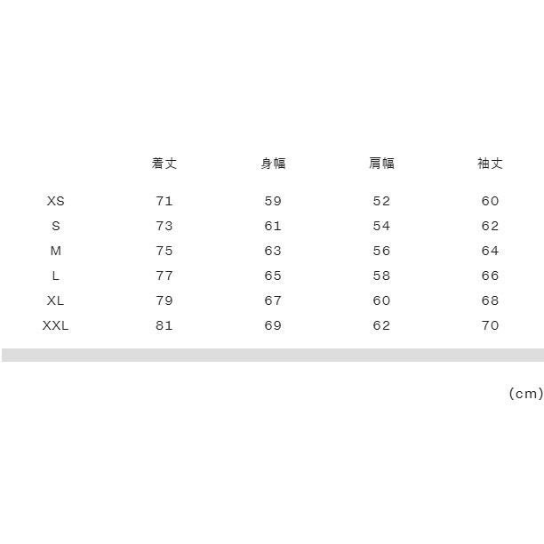 サイズ寸法・実寸(cm)XS:着丈71、身幅59、肩幅52、袖丈60