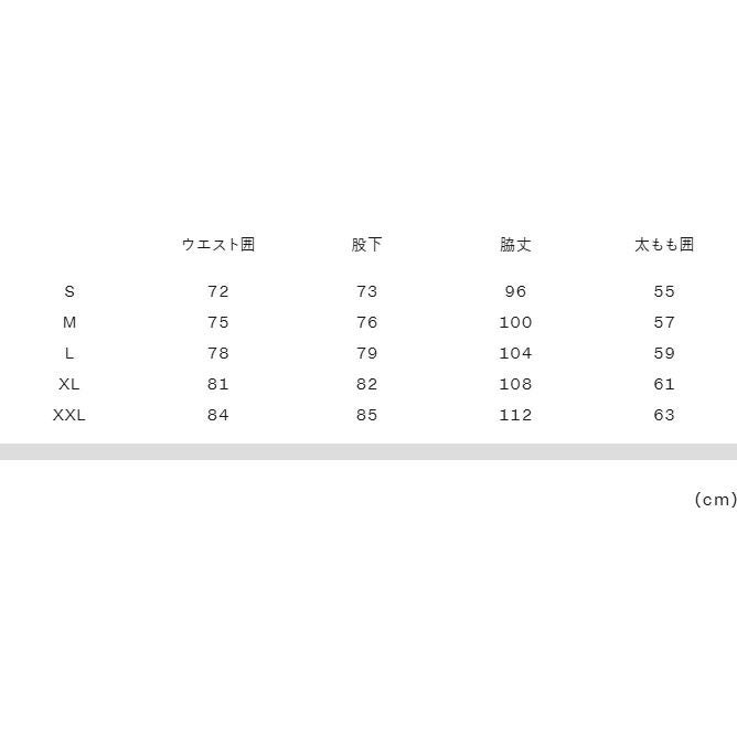 XL:ウエスト囲 81、股下 82、脇丈108、太もも囲61