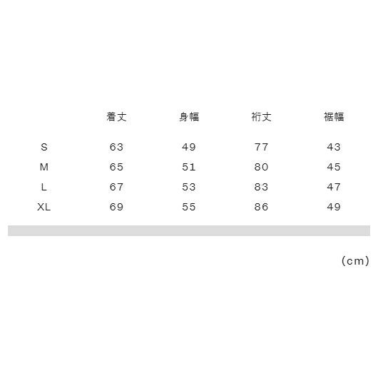実寸サイズ(cm)S:着丈63、身幅49、裄丈77、裾幅43