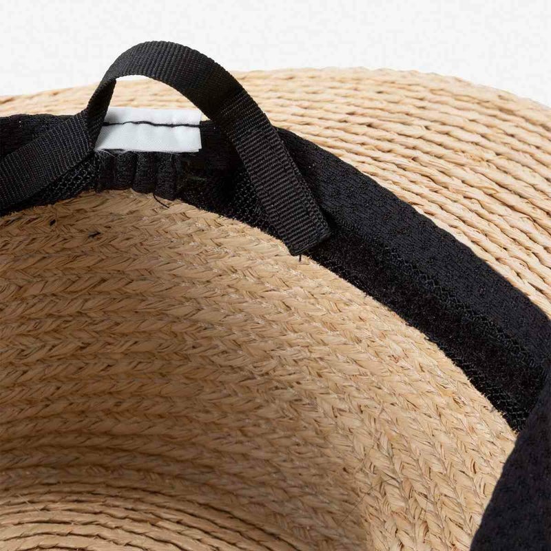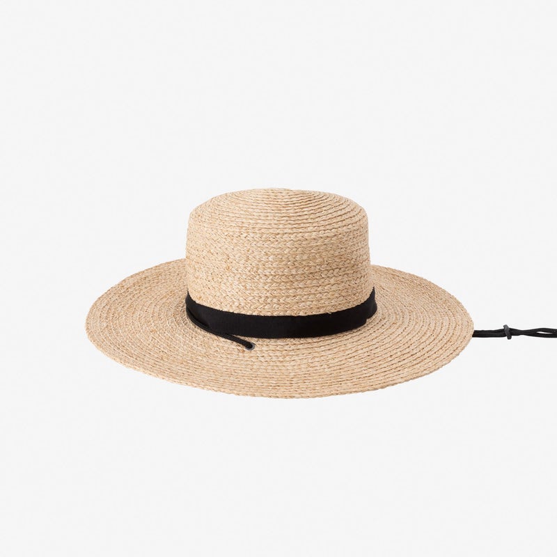 ヤシ科の天然素材ラフィアを使用した、ナチュラルで通気性のあるハット。