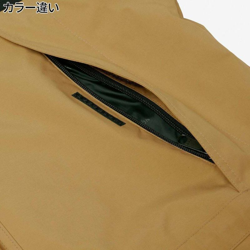 フロント内側のファスナー、袖口と首元のスナップボタンでインナーを連結できるジップインジップシステム対応。