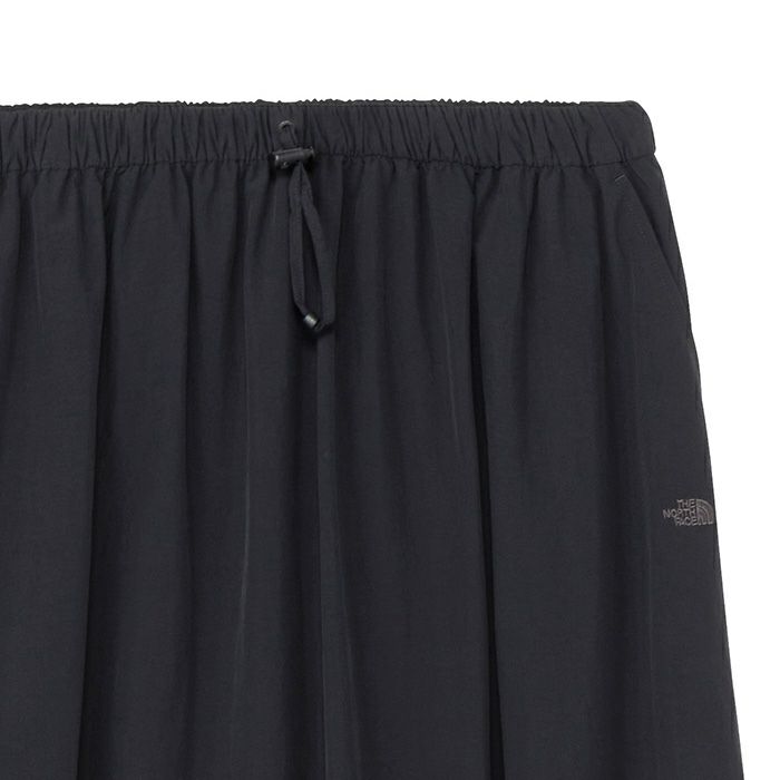 ウエストはゴム仕様で、共地のヒモでフィット感の調節が可能です。
