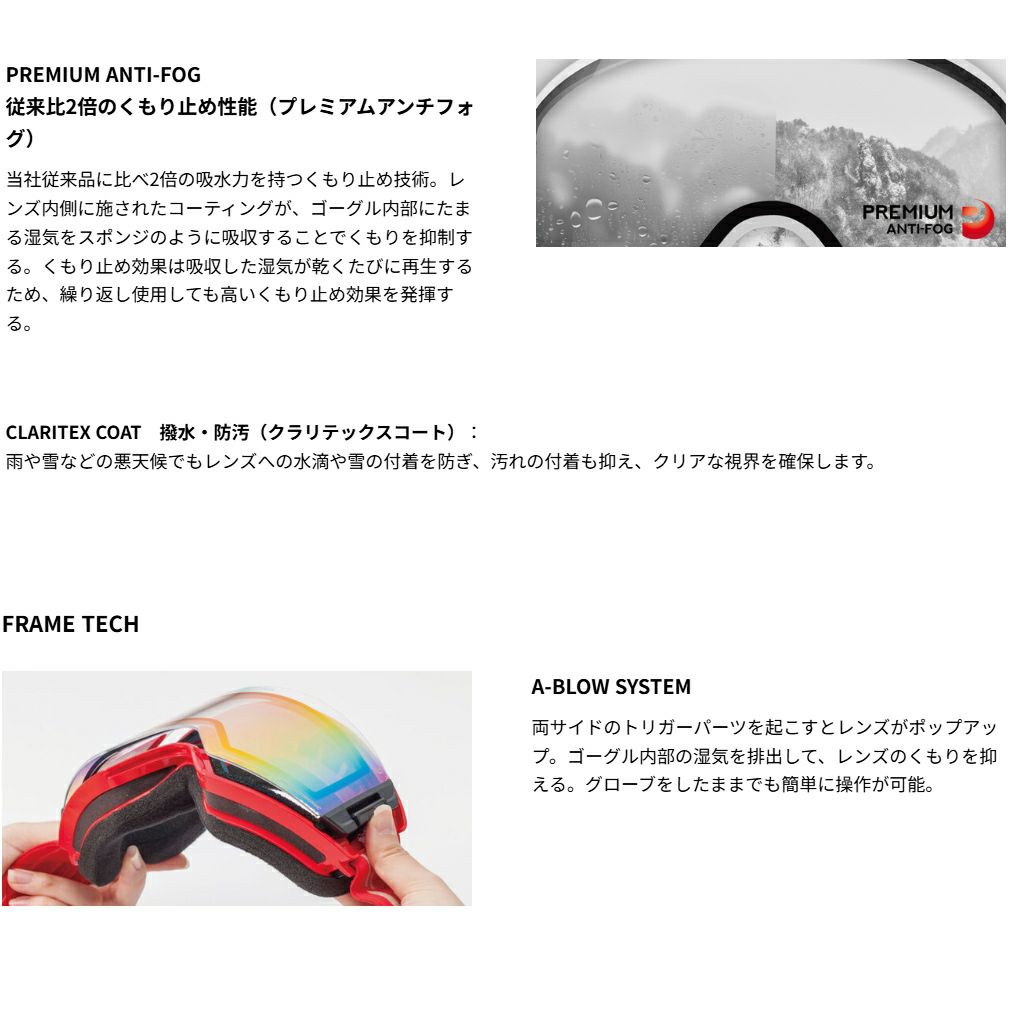 レンズのくもりを防ぐ換気機能「A-BLOW SYSTEM」搭載。眼鏡と併用可能な平面レンズモデル。