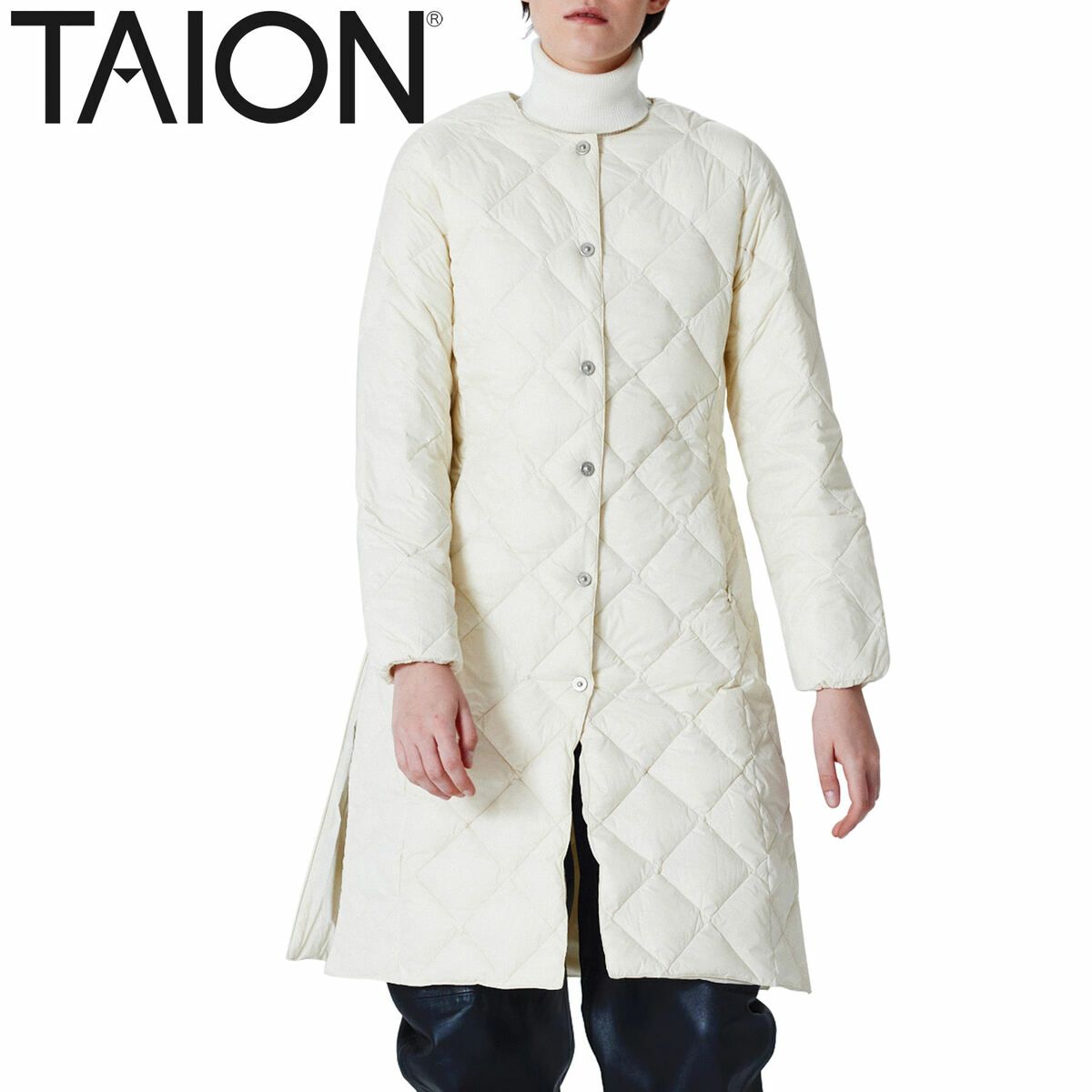 タイオン(TAION) シティ クルーネック ロングダウンコート レディース オフホワイト TAION-W104BCI-LONG
