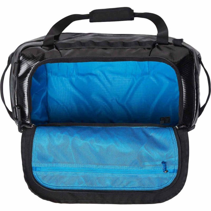 汚れた衣類などを分けて収納できる拡張可能なコンパートメント、T-Gripジッパープル、取り外し可能なショルダーストラップには高度な技術が採用されており、リサイクル素材と耐候性の高い生地によって、どこでも快適に安心して使用できます。