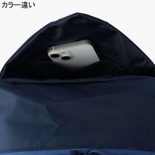 嵩張るウェアなども収納可能なバックル式フロントポケットを配し、ビジネスに必要なアイテムとジムに必要なアイテムを分けて収納できる機能を搭載。