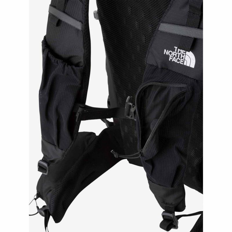 ・スリーブ式とファスナー付きのメッシュポケットが設けられたショルダーハーネス。