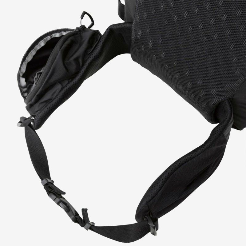 ・メッシュポケットとファスナー付きポケットが設けられたヒップハーネス。