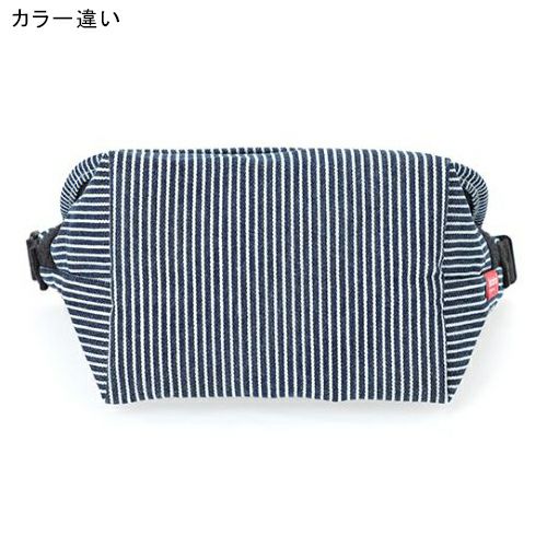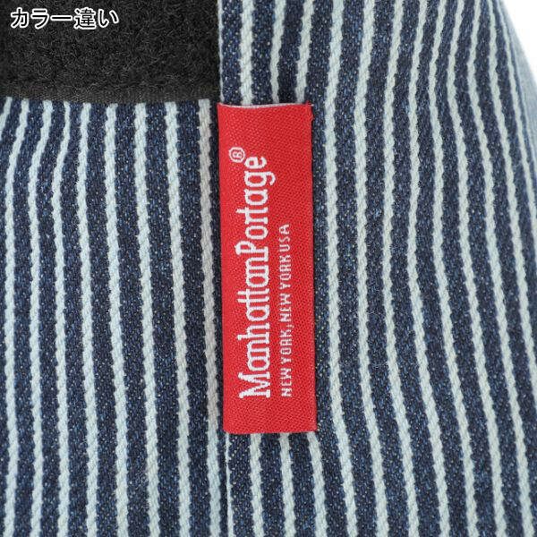 ・Redカラーが際立つミニマルなManhattan Portageラベルも配置し、デニムの色合いとのコントラストが効いたデザイン。