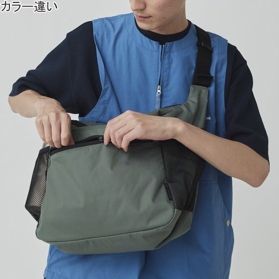 斜め肩掛けにした時に体に沿う形状のミドルサイズのショルダーバッグ。