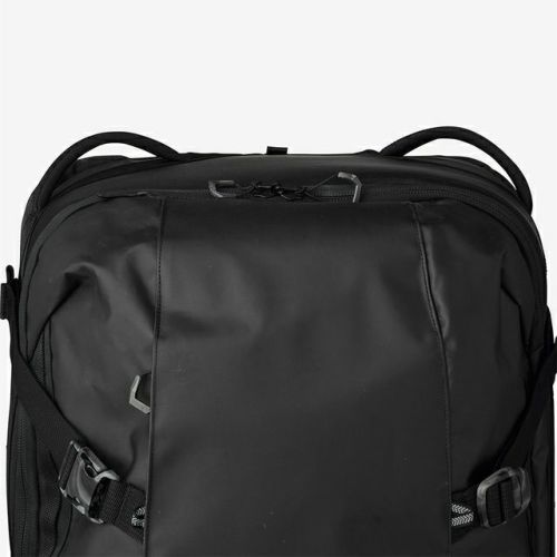 フラップ裏のファスナー付きメッシュポケット、本体内部のオーガナイザー、トップのアクセサリーポケット、サイドにはシューズなどを収納しやすいマチ付きファスナーポケットなど多くの荷物を小分けに収納できます。