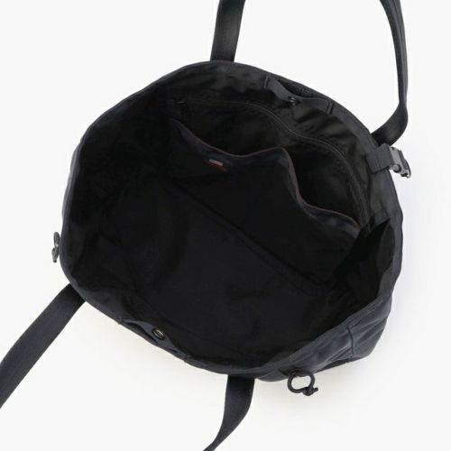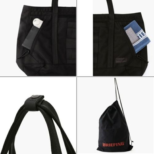 全体を黒でまとめたミニマルな佇まいとしながらも、引き手紐やBRIEFINGを象徴するレッドラインをカバンの内部に配置するなど、BRIEFINGらしい無骨な雰囲気を融合させている。