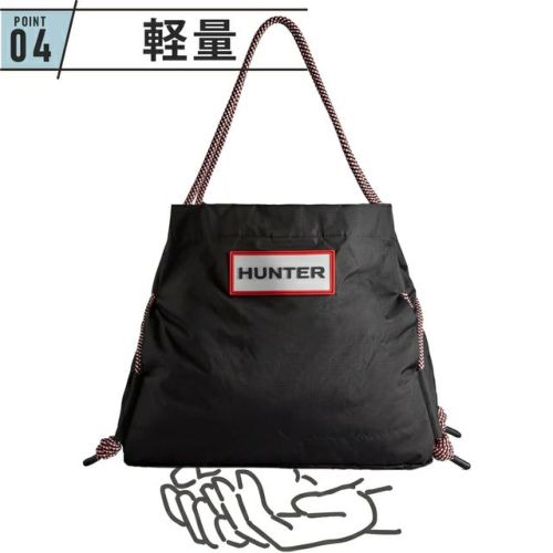 ハンター(HUNTER) トラベル リップストップ リサイクル ナイロン ビーチ バッグ travel ripstop beach bag トートバッグ ブラック/レッドボックスロゴ UBS1518NRS RBO