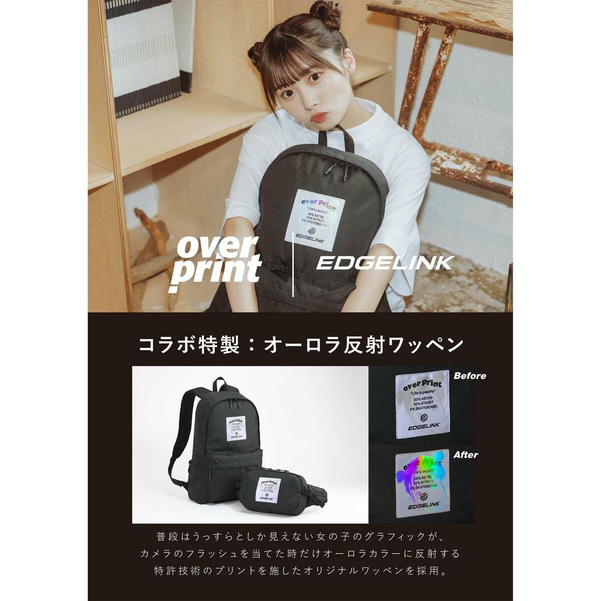 人気ストリートブランド『over print』とのコラボ企画商品!ストリートファッションに合わせやすいデイパック。