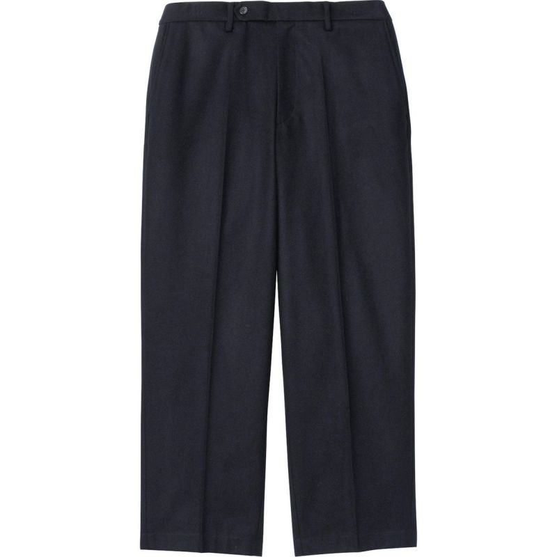 裁断屑や回収した古着などを原料としたアップサイクルウールと、軽量なポリプロピレンを混紡した生地を採用した、リラックスシルエットのパンツです。
