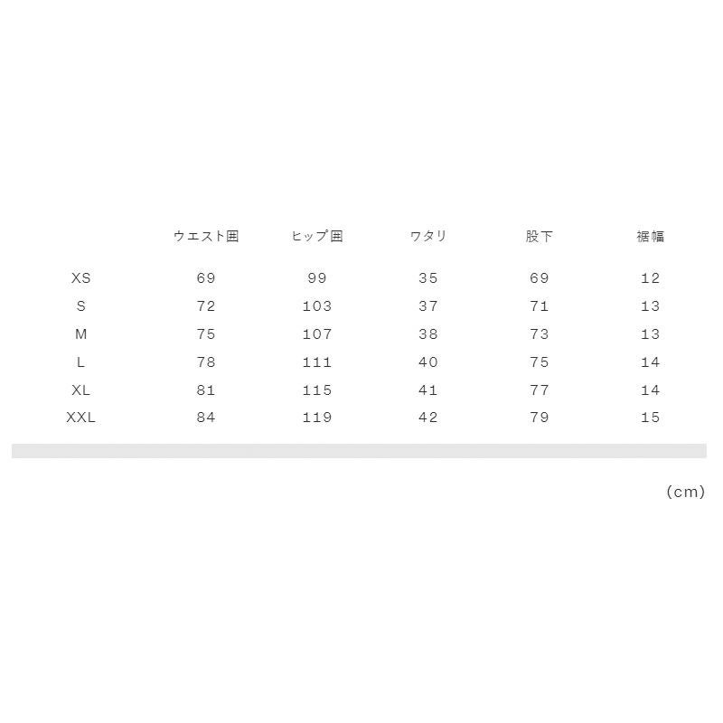 XS:身長155-165、チェスト80-88、ウエスト66-74、ヒップ82-90