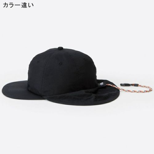 風に飛ばされないためのクリップが付いた日よけキャップ。